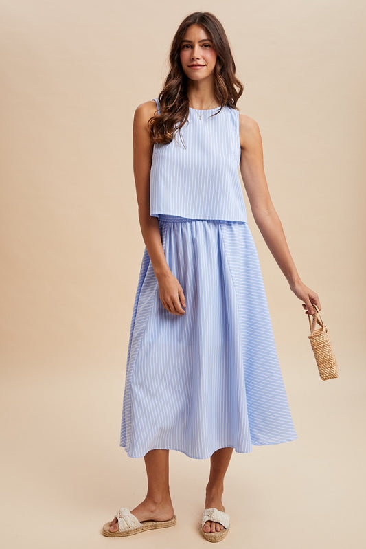 Stripe Sleeveless Top & Front Slit Midi Skirt Set (Sold Separately)