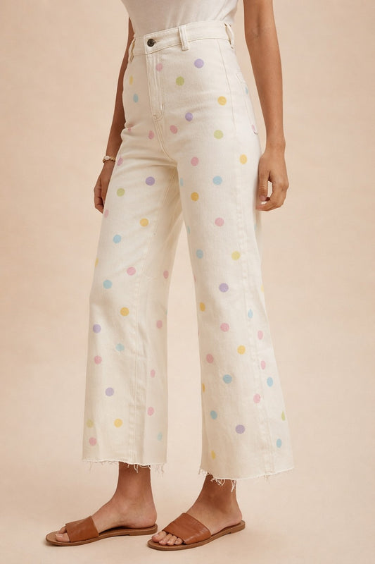 Comfort Stretch Pastel Polka Dot Wide Leg Jean