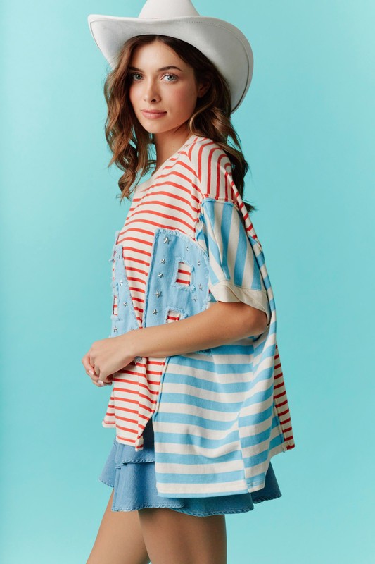 Vintage Star Print Denim Zip Up Overall Jumpsuit - Redm