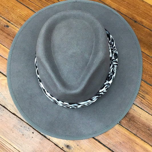 Olive & Pique Grey Pinched Crown Fedora with Leopard Scarf Band