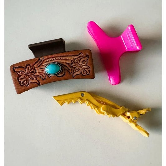 Western Faux Embossed Leather Hair Clip Turquoise Stone