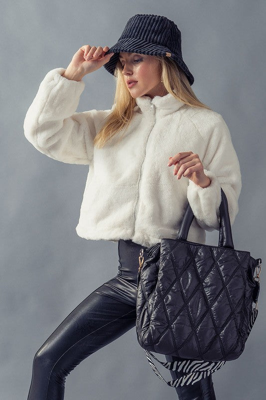 Diamond Quilted Puffer Cross Bag with Strap - Black