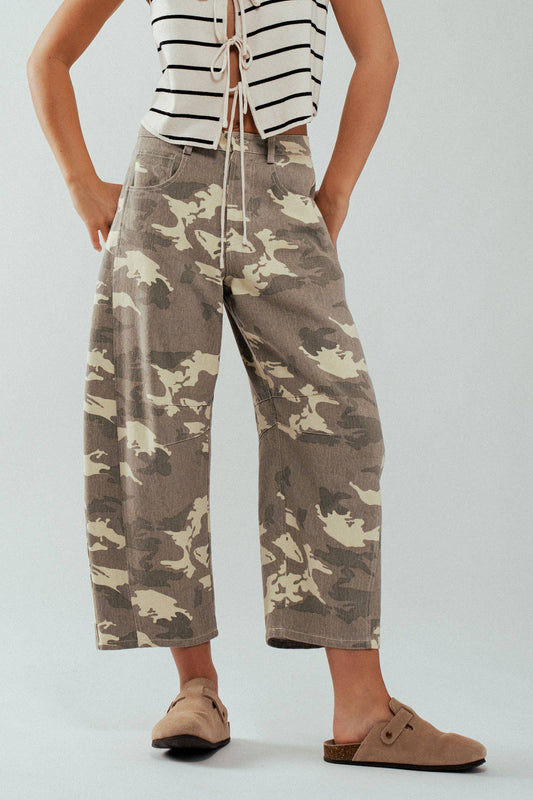 Camo Print Wide Leg Cropped Western Jeans