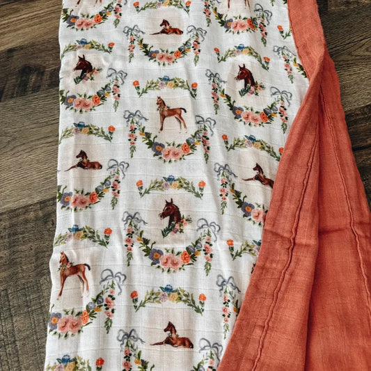Painted Foal Bamboo Muslin Baby Blanket