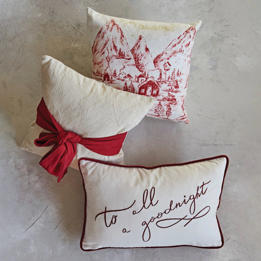18" Square Hand-Woven Cotton Slub Pillow w/ Bow