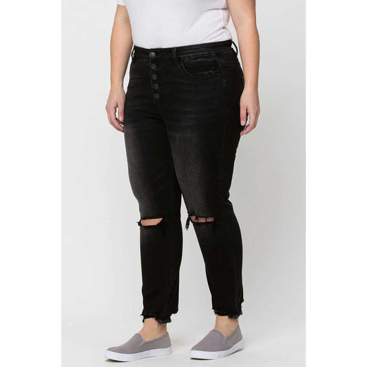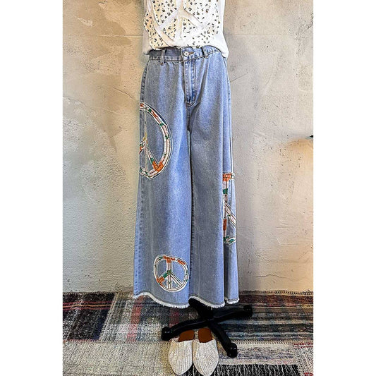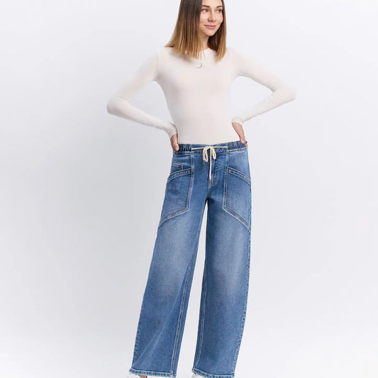 Mid Rise Wide Leg Denim Jeans w/Drawstring