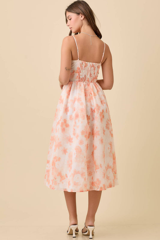Bow Printed Puff Smocking Back Tiered Dress - Pink