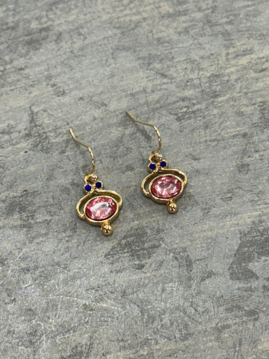 Pink with Blue Jeweled Earrings