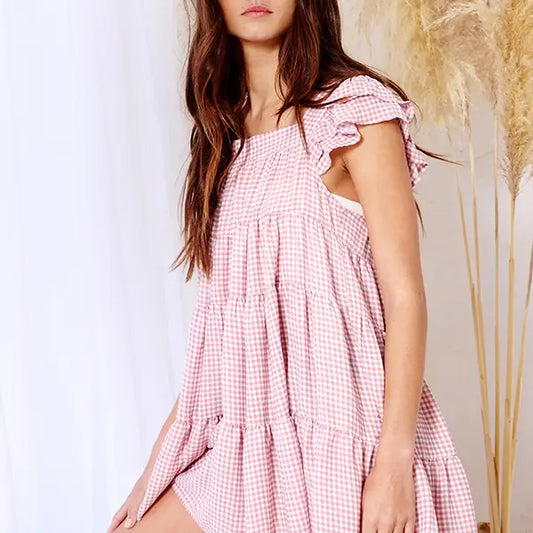 Gingham Print Tiered Babydoll Mini Dress