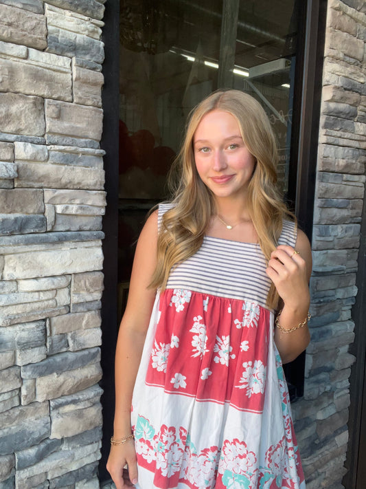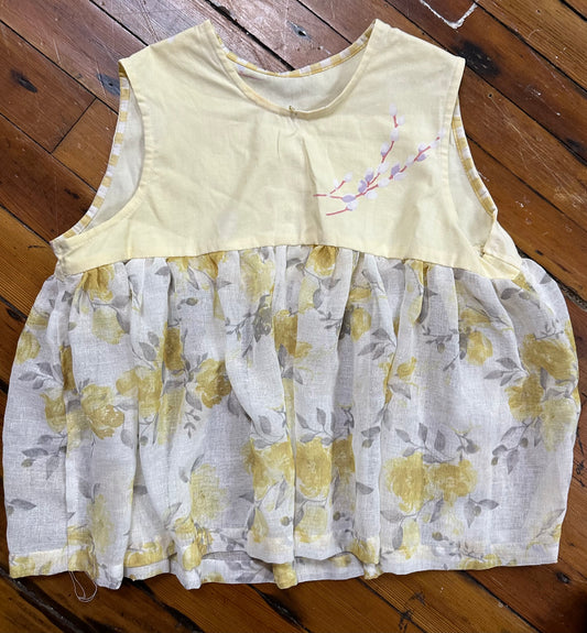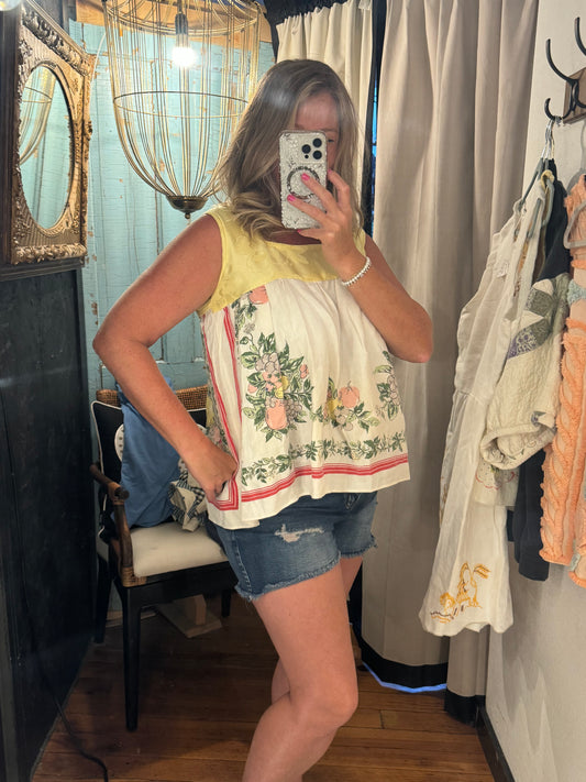 Pin Stripe Floral Tablecloth Sleeveless Top