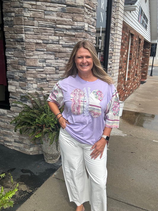 Quilted Butterfly Tablecloth Sleeve Top - Lavender
