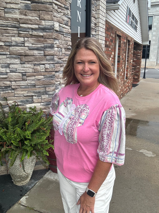 Quilted Butterfly Tablecloth Sleeve Top - Pink