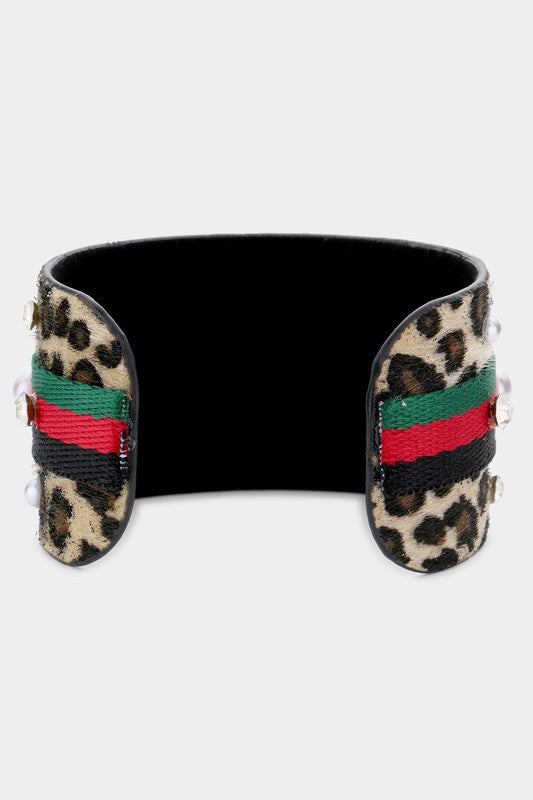 Honey Bee Accented Leopard Patterned Cuff Bracelet