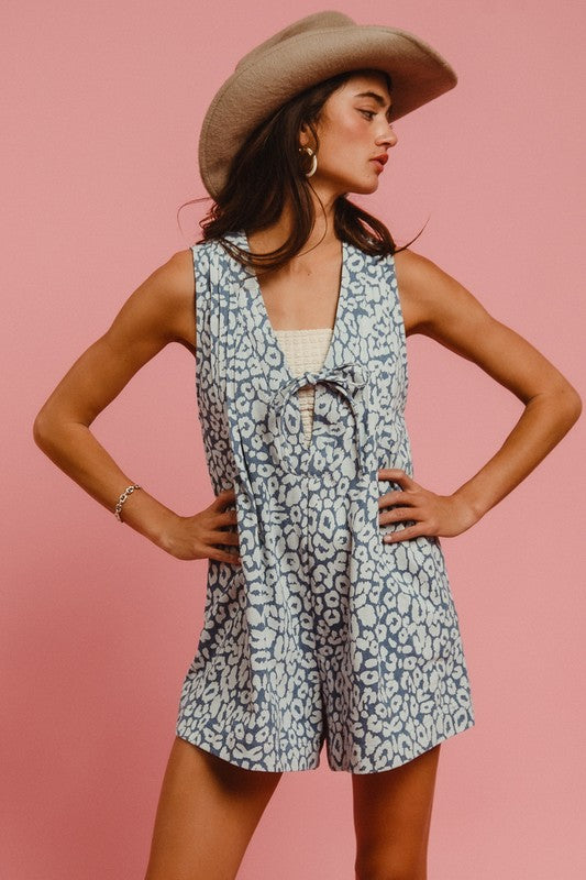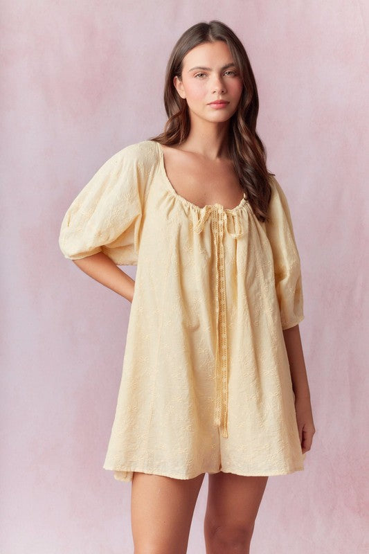 Bow Eyelet Front Embroidery Tie Detail Romper