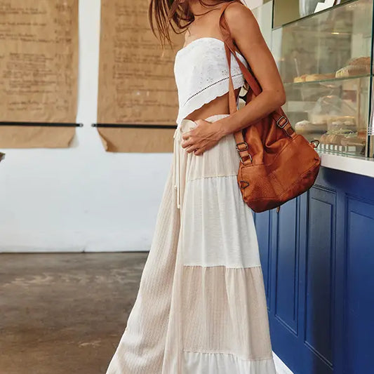 Wide Leg Solid Cotton Gauze Pants - Brown