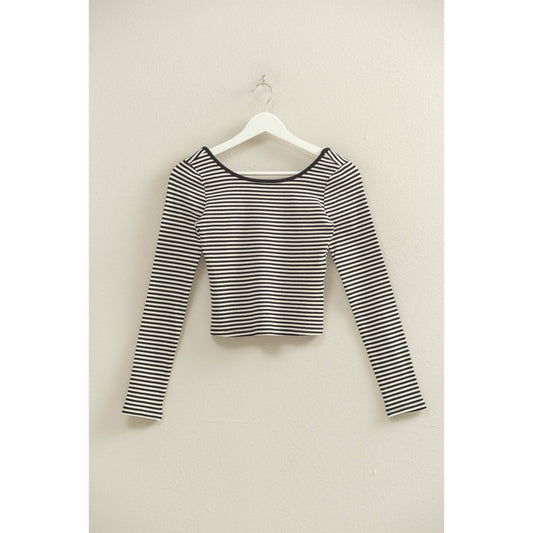 Stripe Turn-Down V Neck Patchwork Loose Top