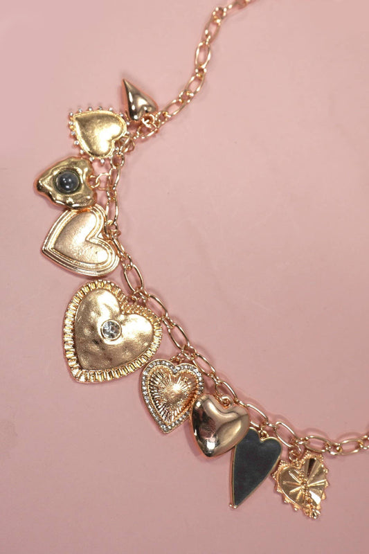 Charm Necklace - Hearts Porcelain Fish Rhinestone