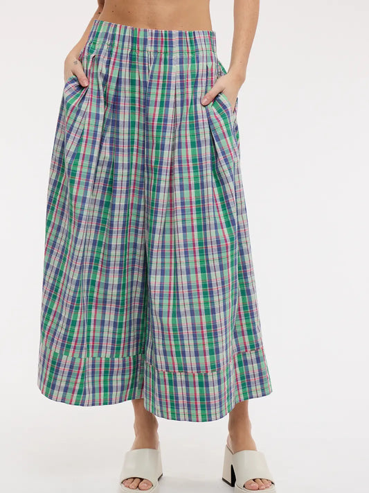 Lightweight Soft Denim Stripe Wide Barrel Pants - Red