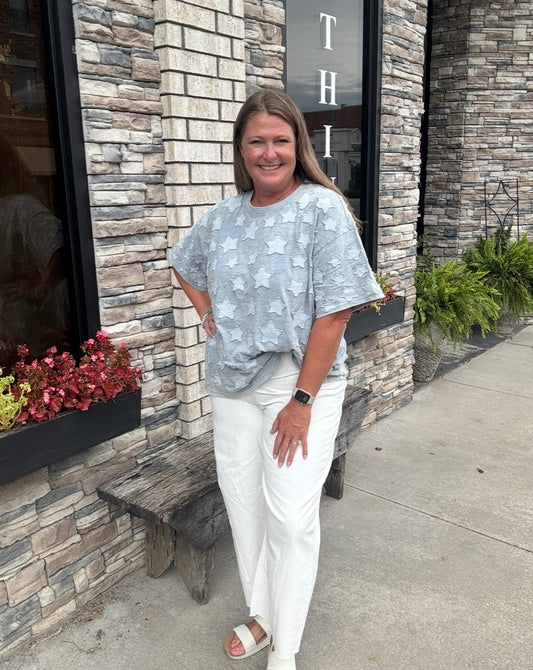 Distressed Denim Star Appliqué Tee