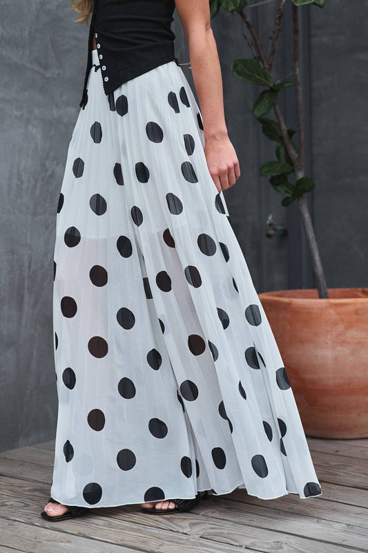 Polka Dot Pleated Chiffon Maxi Skirt