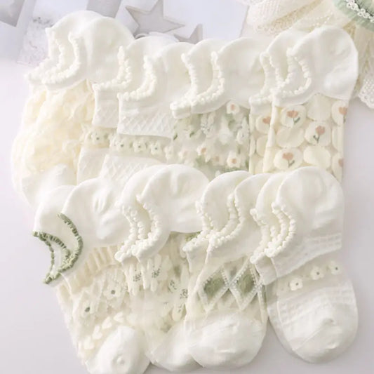 Rufia - White Floral Ankle Summer Socks