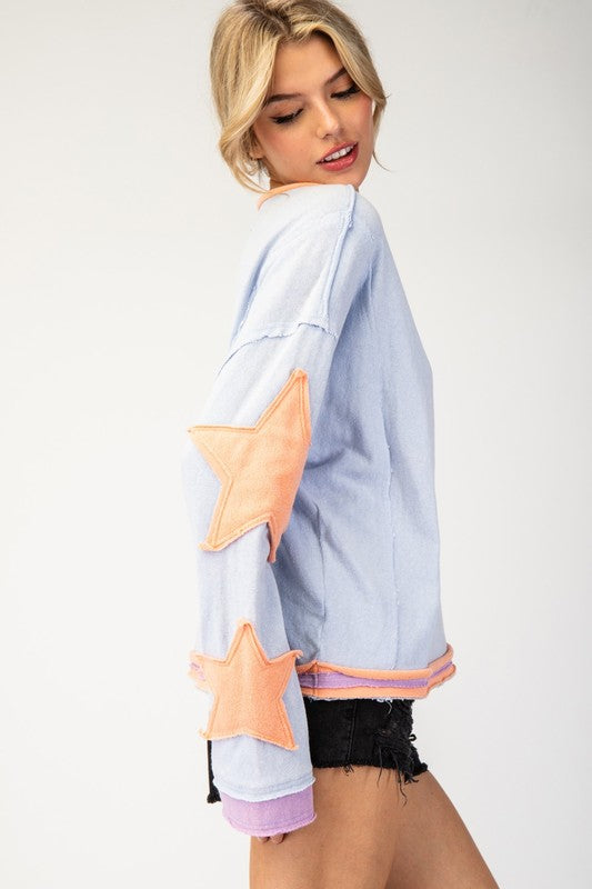 Star Patch Detail Solid Chambray Wide Pants - Denim