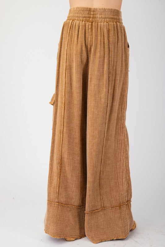 Cotton Gauze Mineral Washed Pants - Camel
