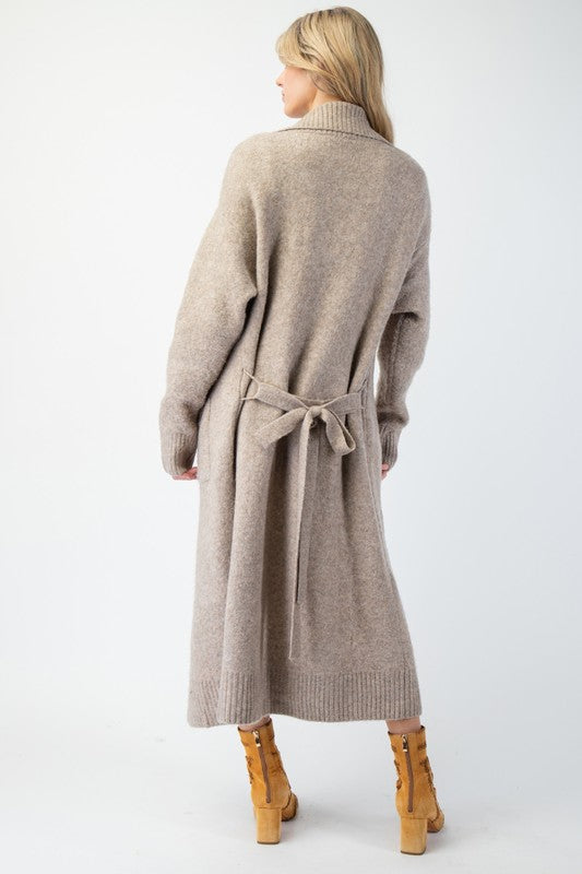 Tie Waist Maxi Knit Cardigan - Khaki