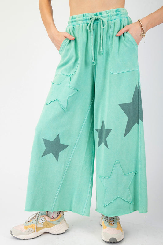 Star Patch Terry Knit Pants - Evergreen