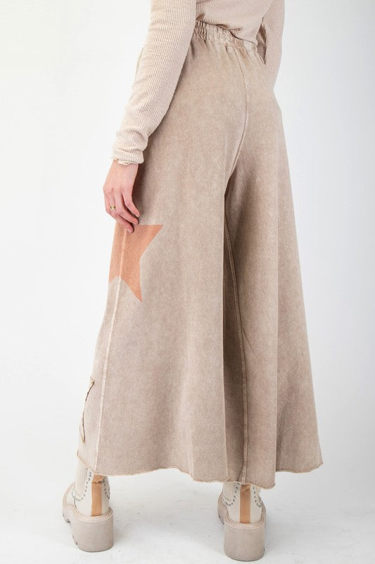 Star Patch Terry Knit Pants - Latte