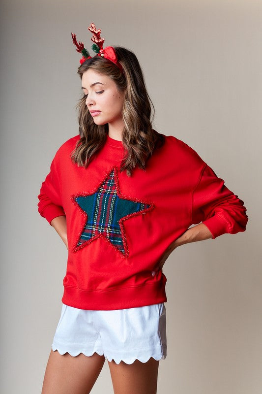 Plaid Star Applique Holiday Sweatshirt