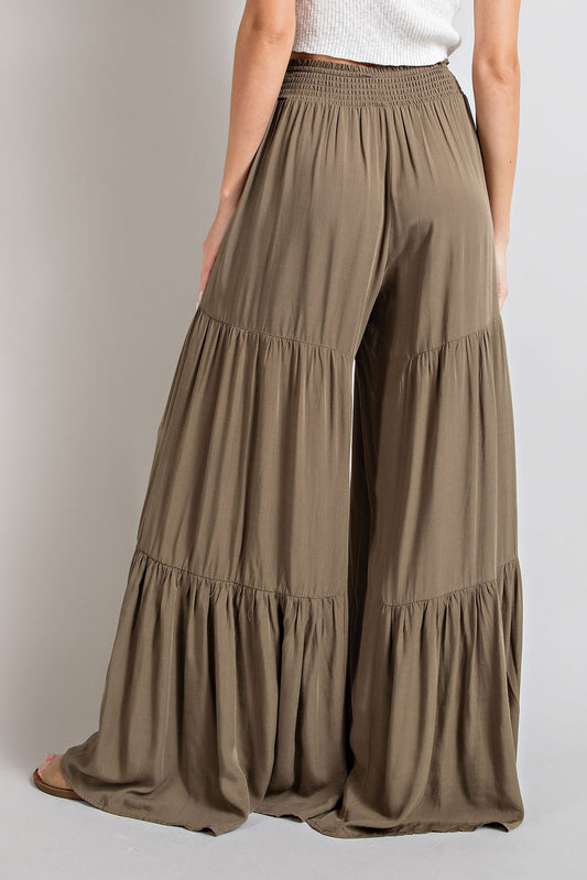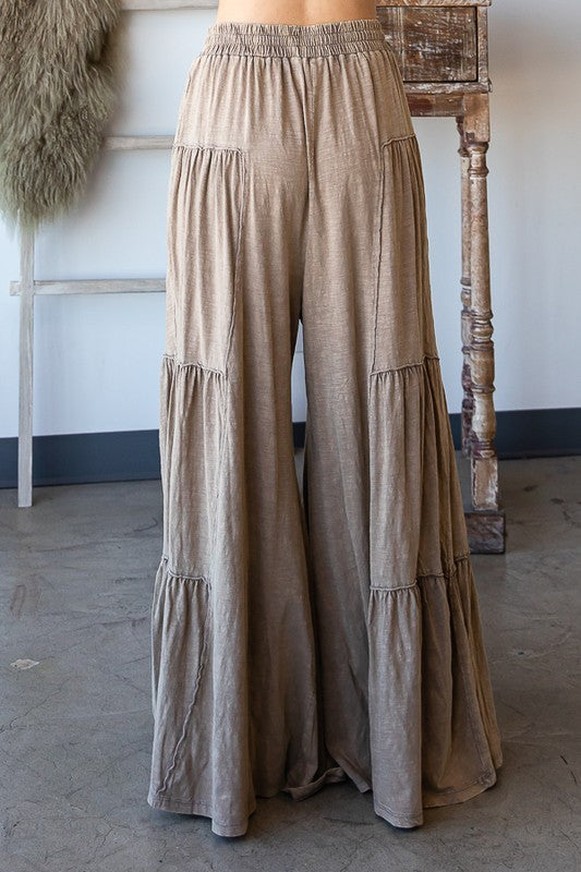 Mineral Washed Tiered Wide Leg Pants - Mocha