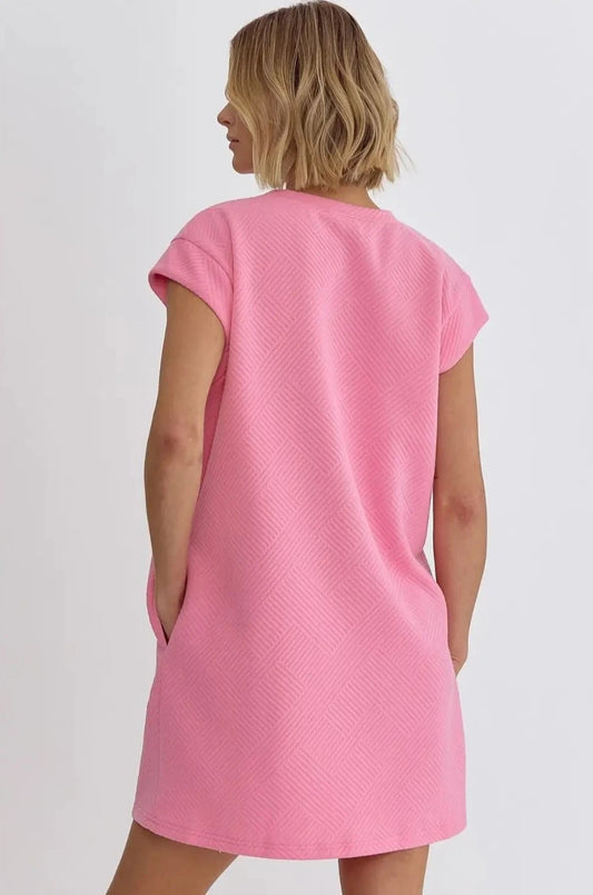 Textured Round Neck Sleeveless Mini Dress - BubblegumRegular price $65.00 USDRegular priceUnit price per-