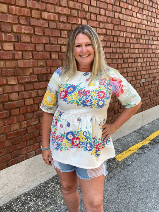 Lightweight Floral Quilted Sleeve Top