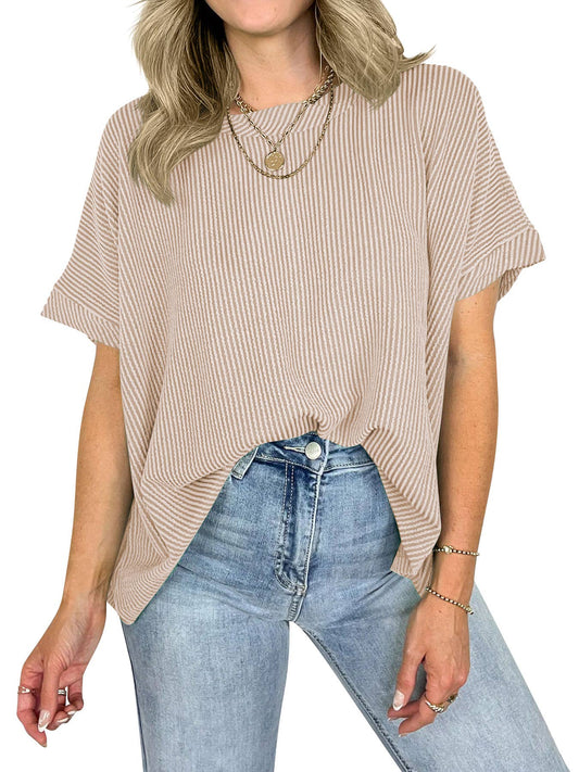 Cozy Ribbed Short Sleeve Oversized T-Shirt