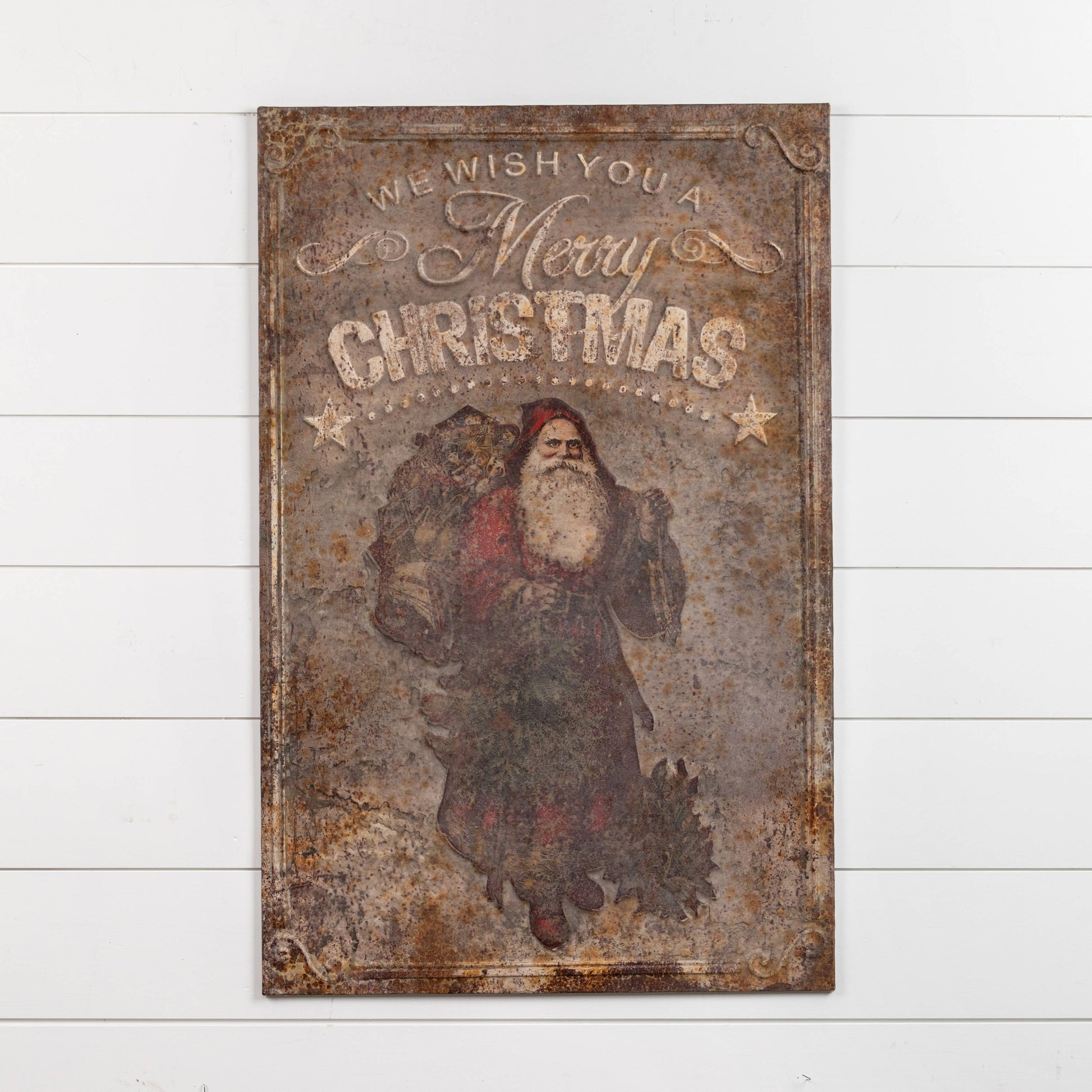 Add a festive touch to your winter decor with the 38.75" Metal Merry Christmas Santa Plaque from Ragon House.