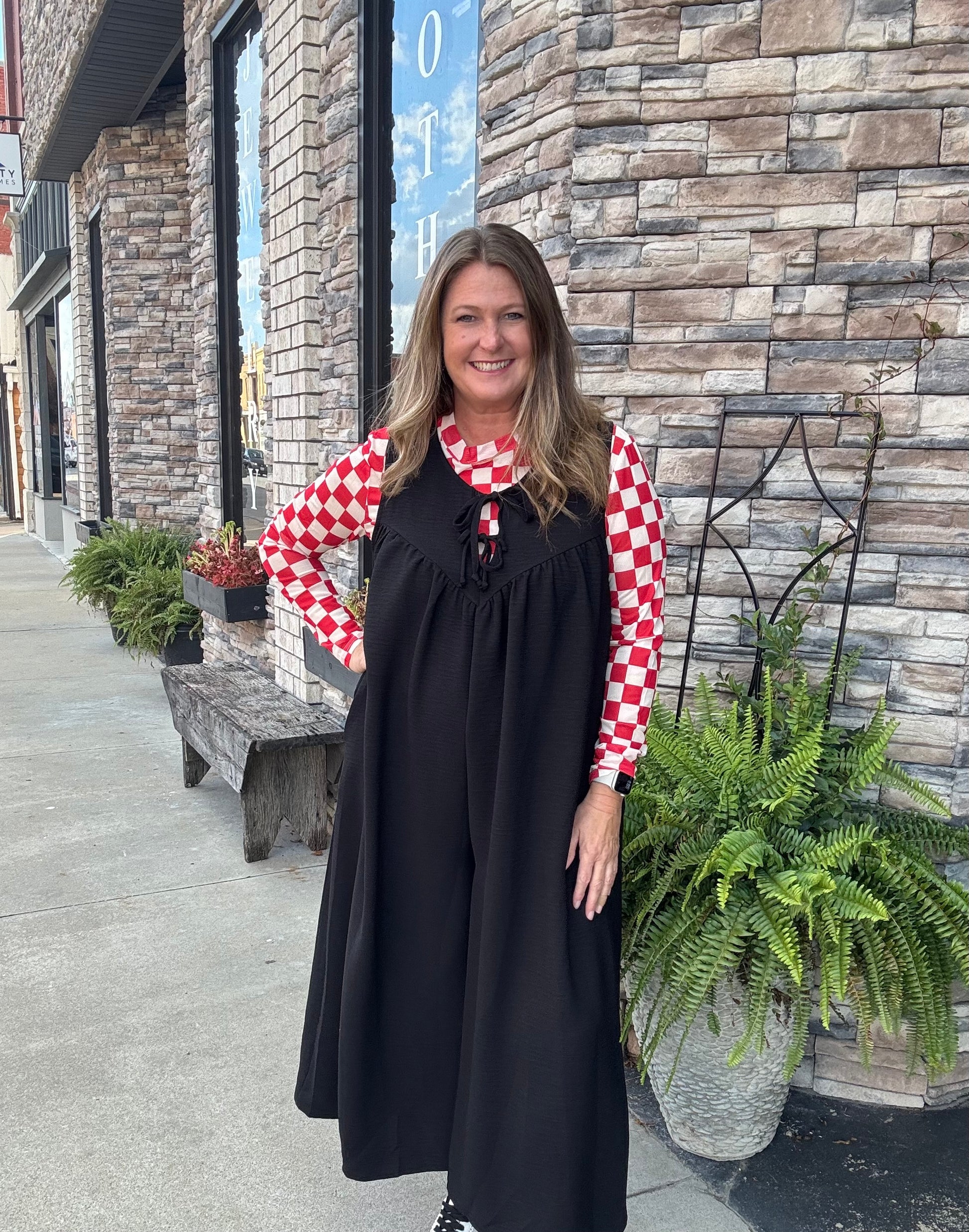 Black Textured Front Tie Jumpsuit