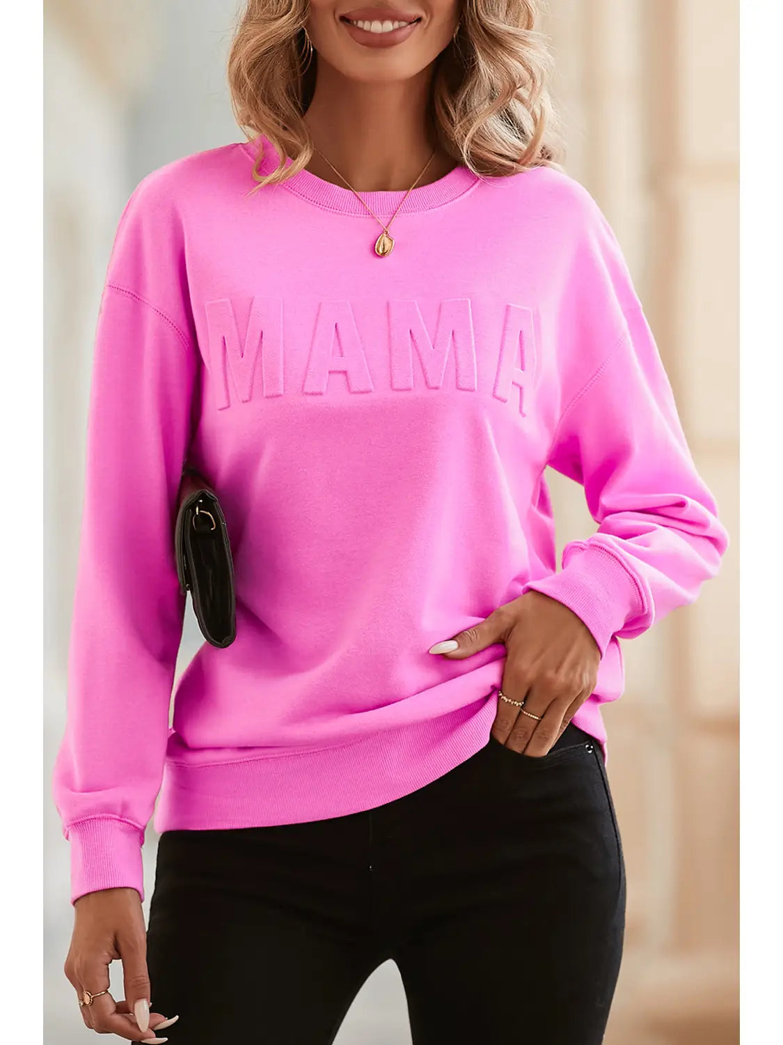 Bright Pink Mama Letter Embossed Casual Sweatshirt