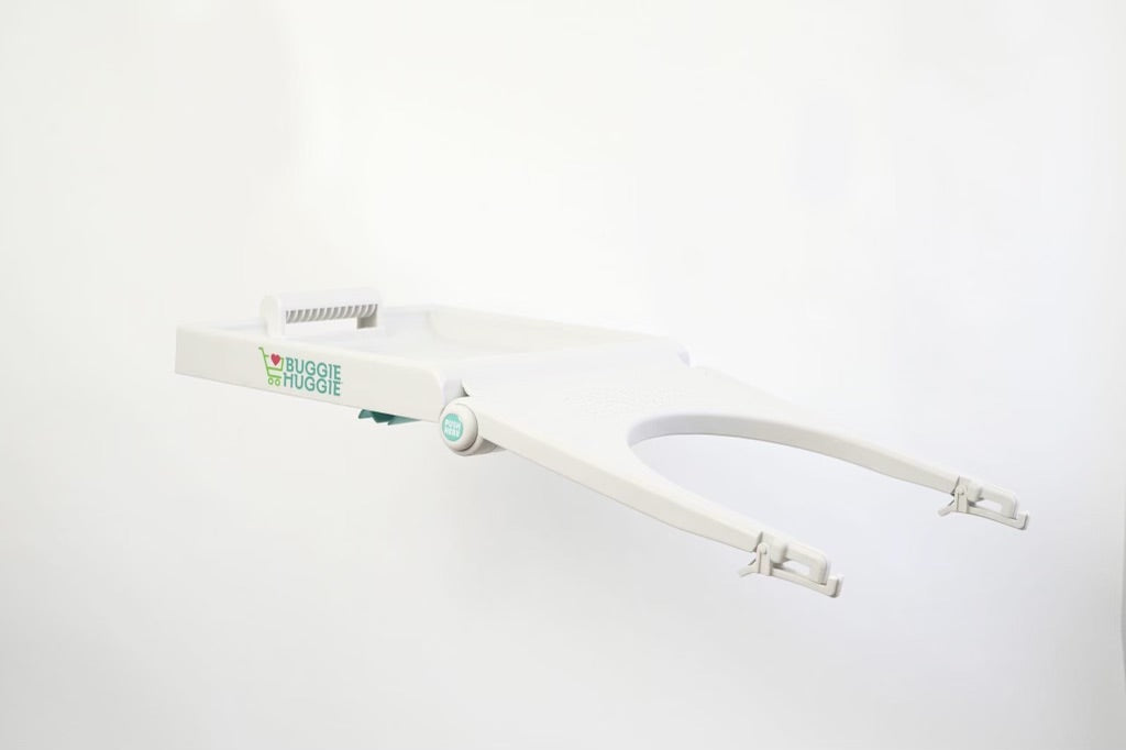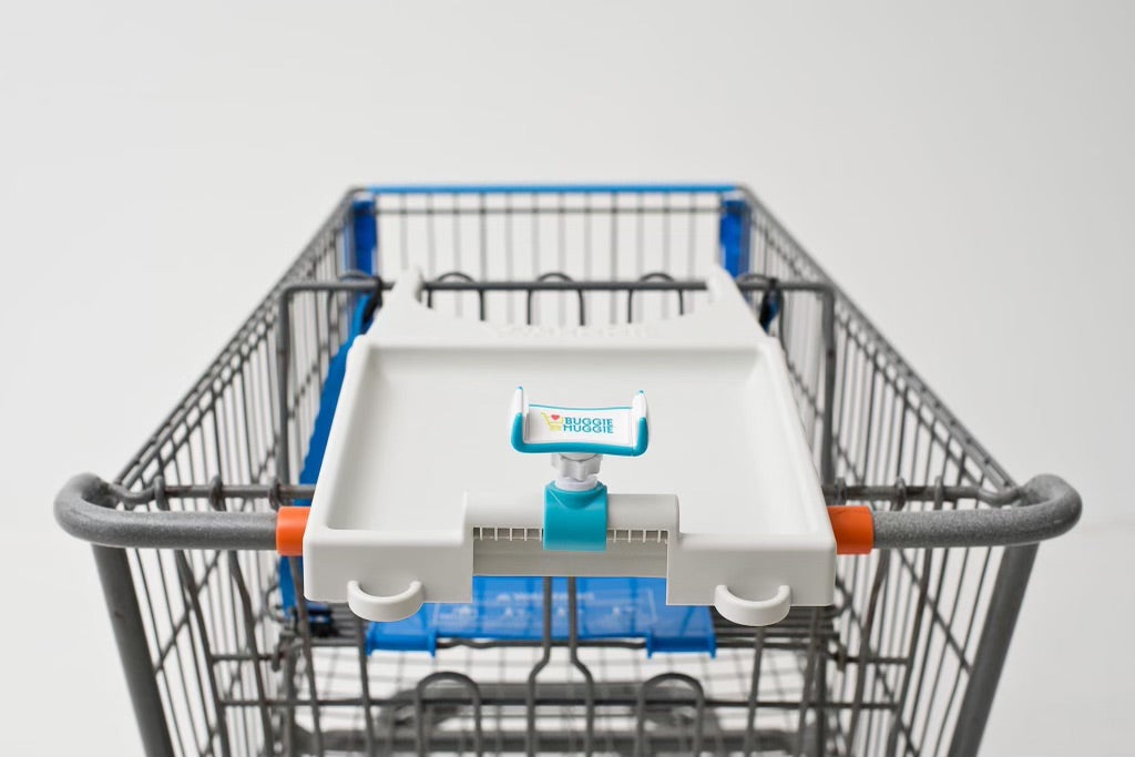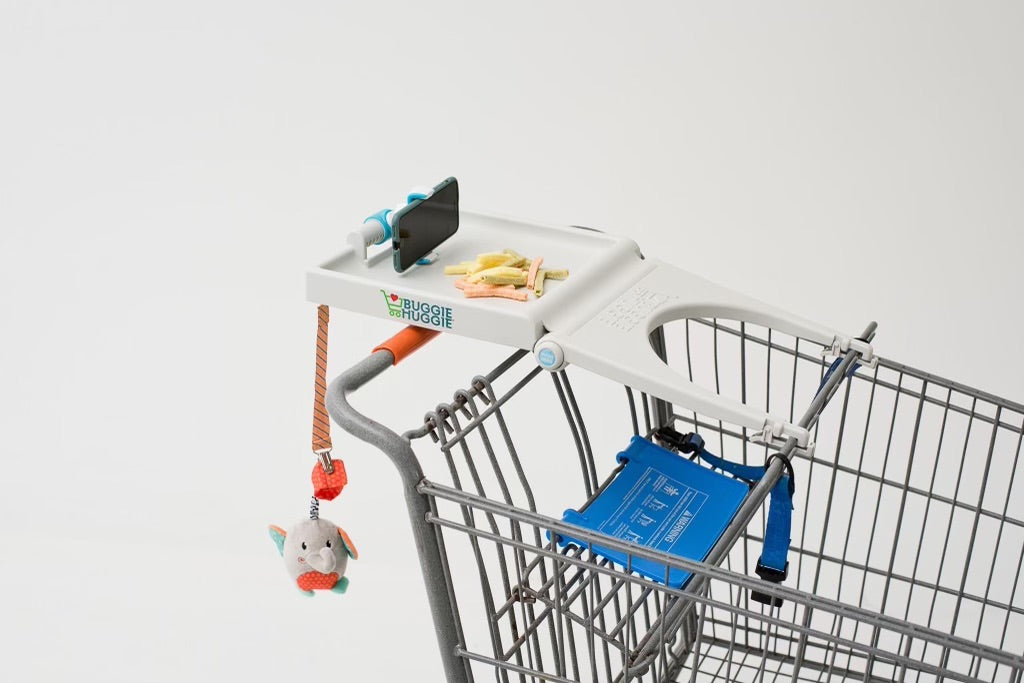 Keep them snuggly in the cart with a tray to help keep their toys/trinkets contained.