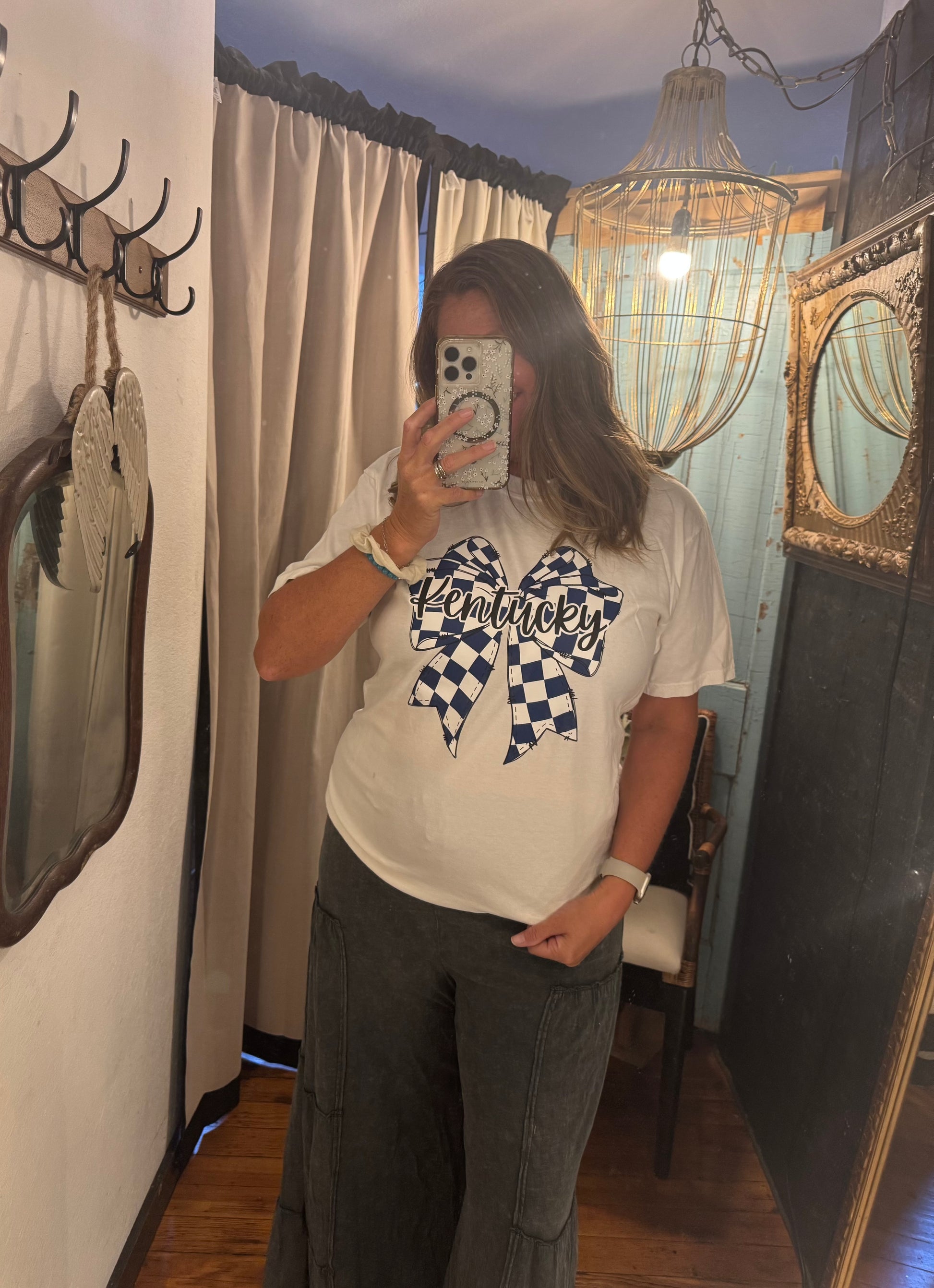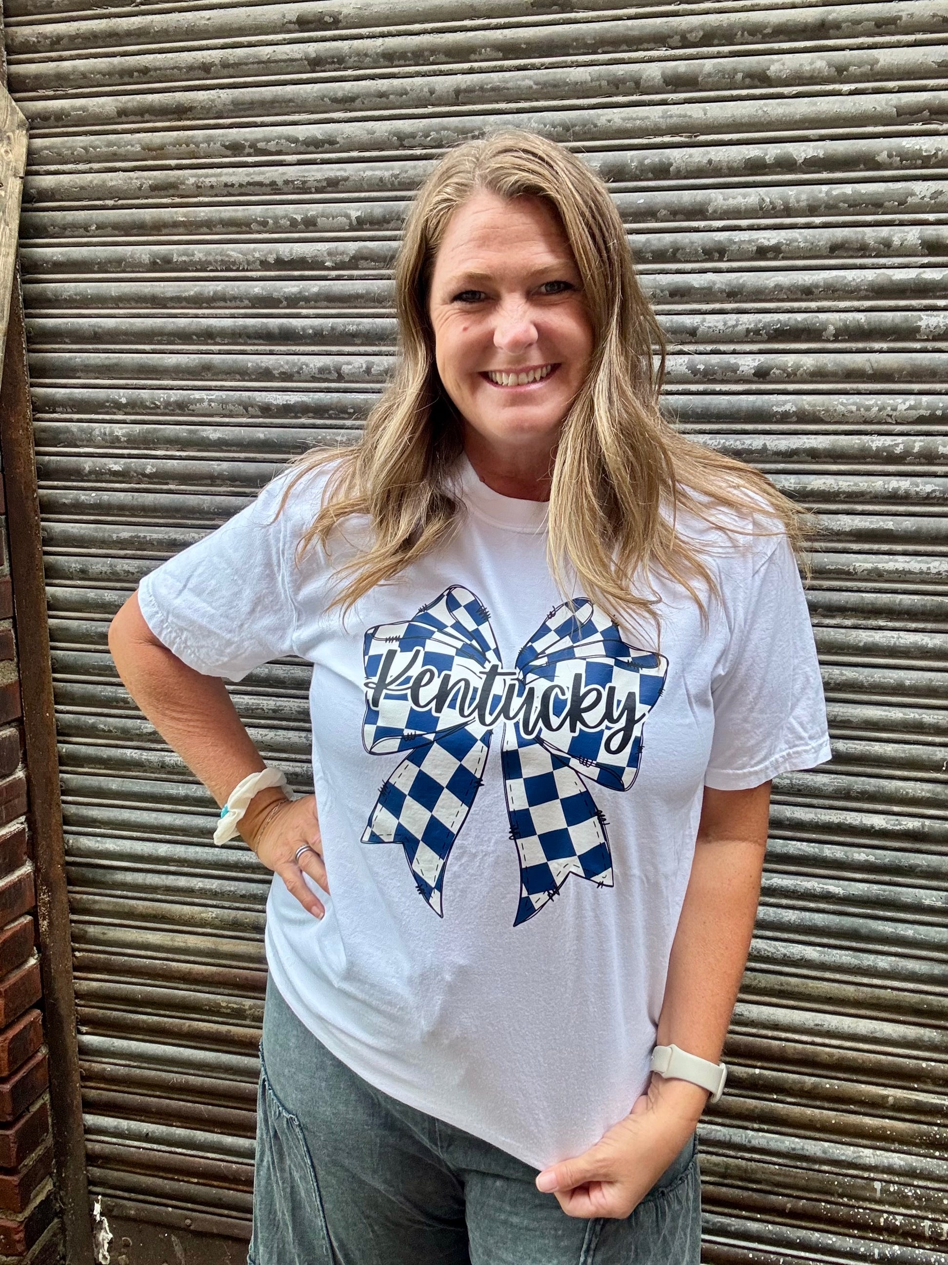 Check Bow with Kentucky on a Comfort Colors Tee.
