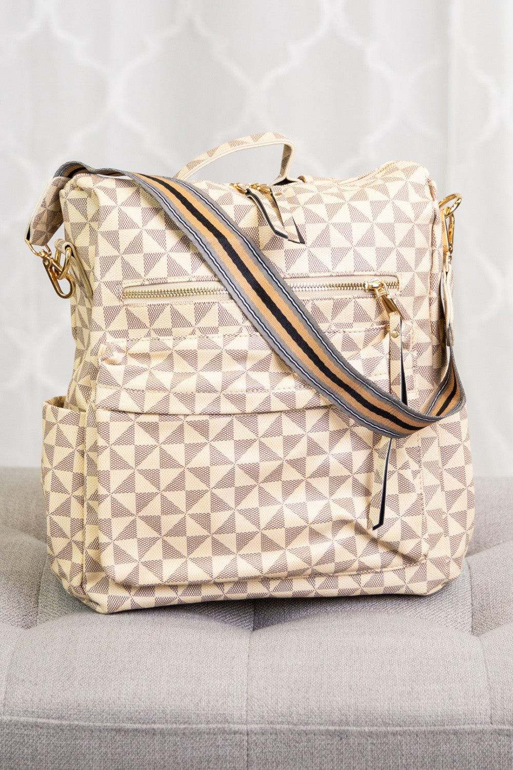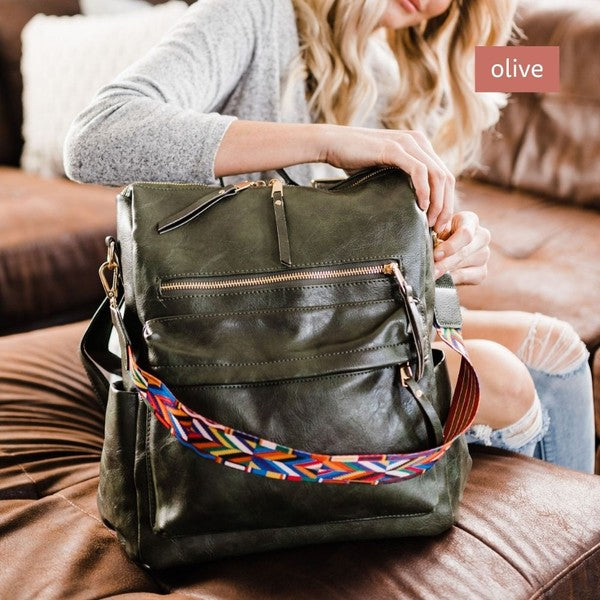 Featuring a fun strap to carry on your shoulder or simply slip it on and carry as a backpack.