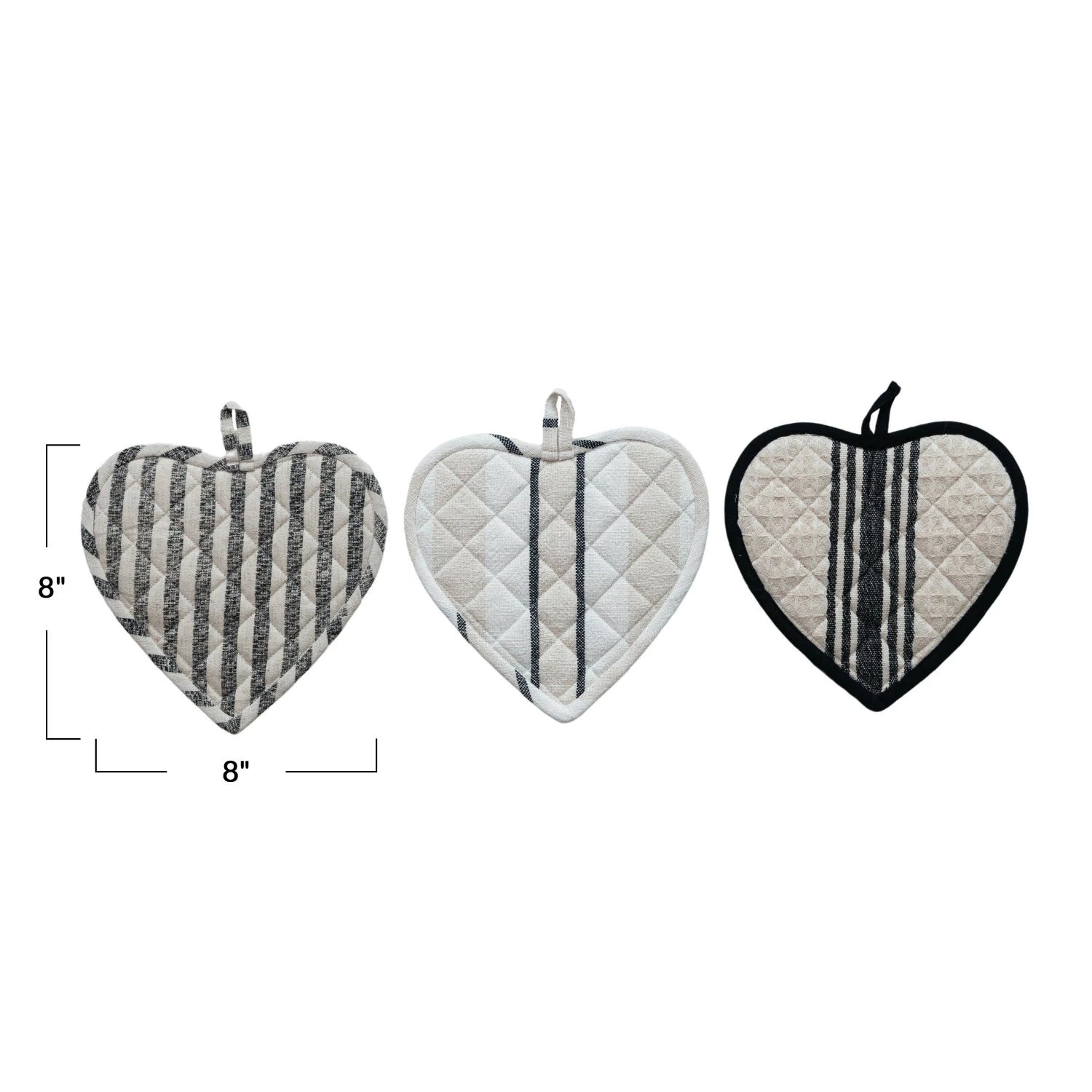 Cotton Quilted Heart Shaped Pot Holder w/ Stripes