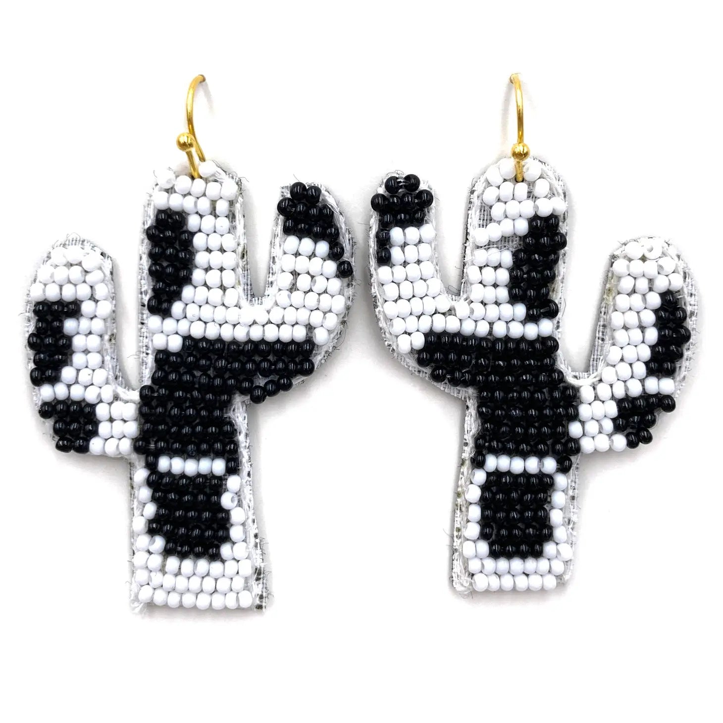 Cow Print Seed Bead Cactus Earrings