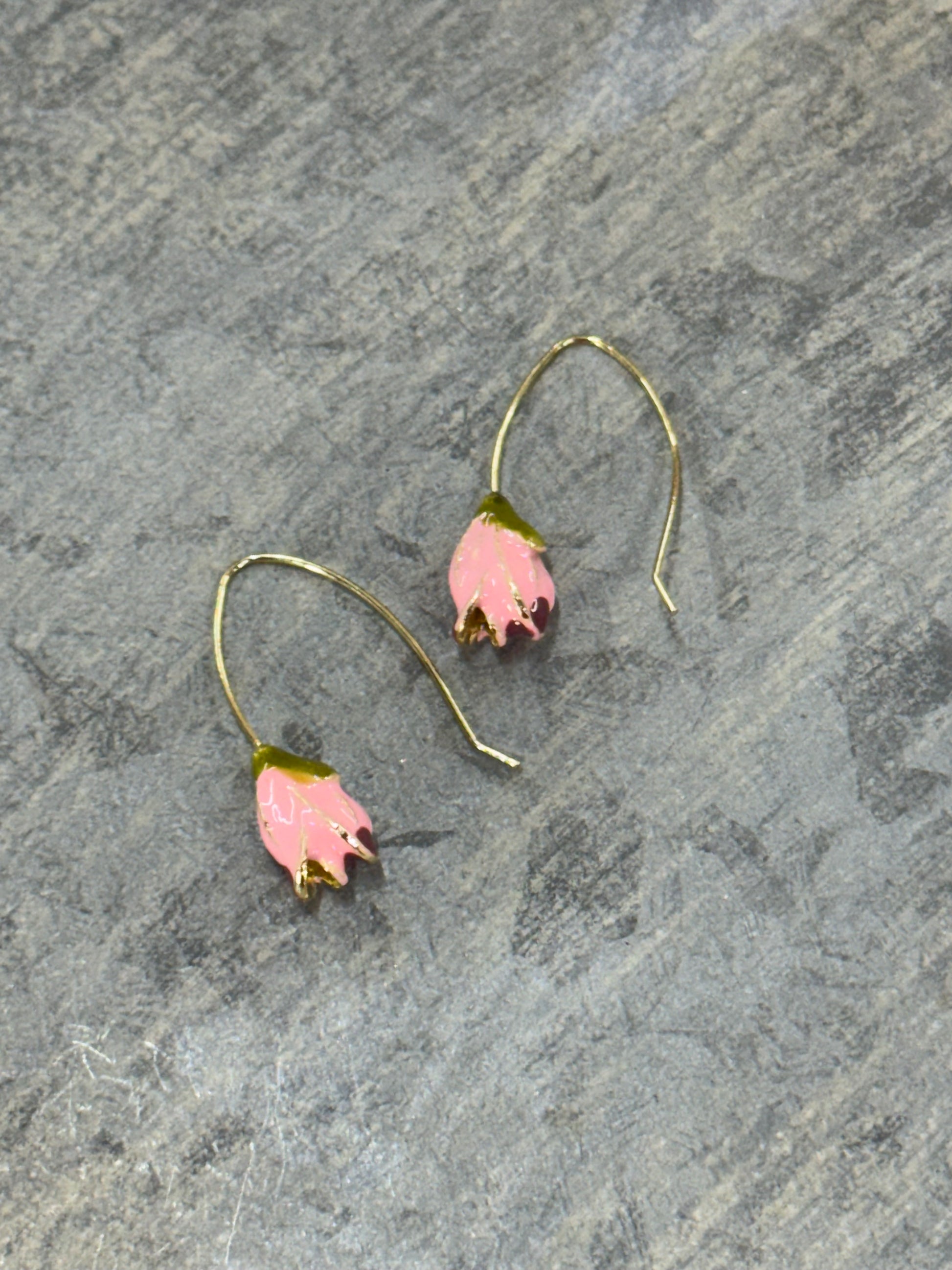 Pink dropped tulip earrings.