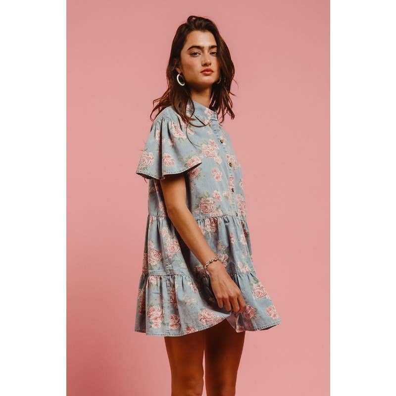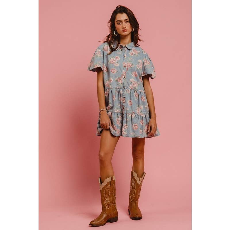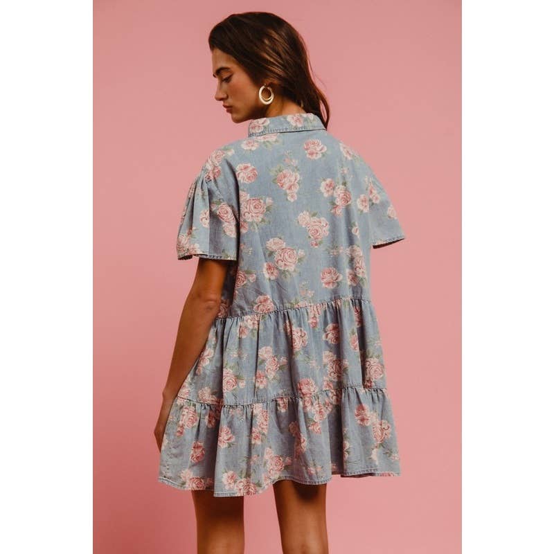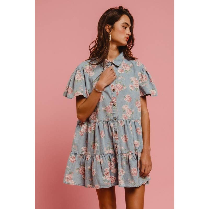 The Floral Print Washed Lightweight Tiered Shirt Dress is a breezy and stylish option for any occasion.