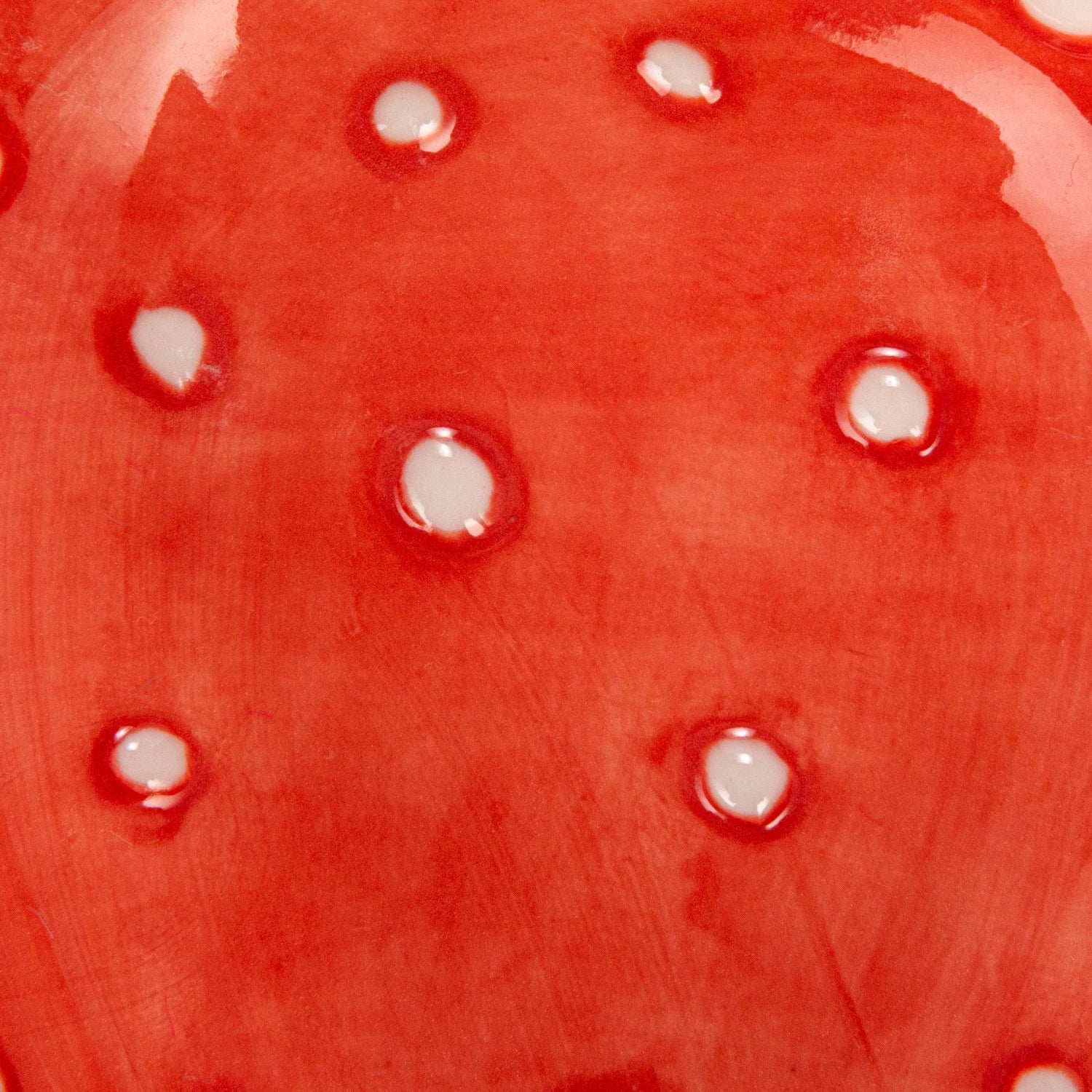 A whimsical strawberry design in red, green, and white adorns each cup, making them a delight to use.
