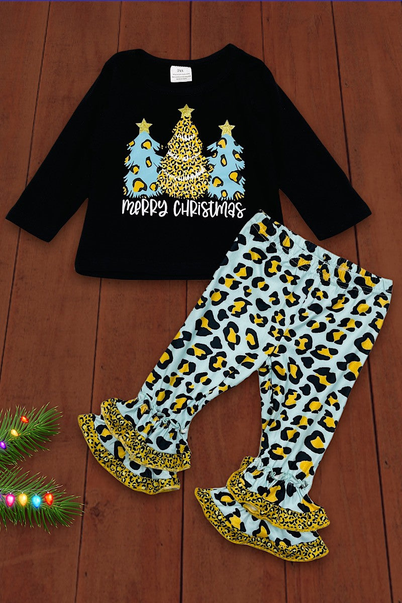 Kids Leopard Christmas Trees Tee and Pant Set