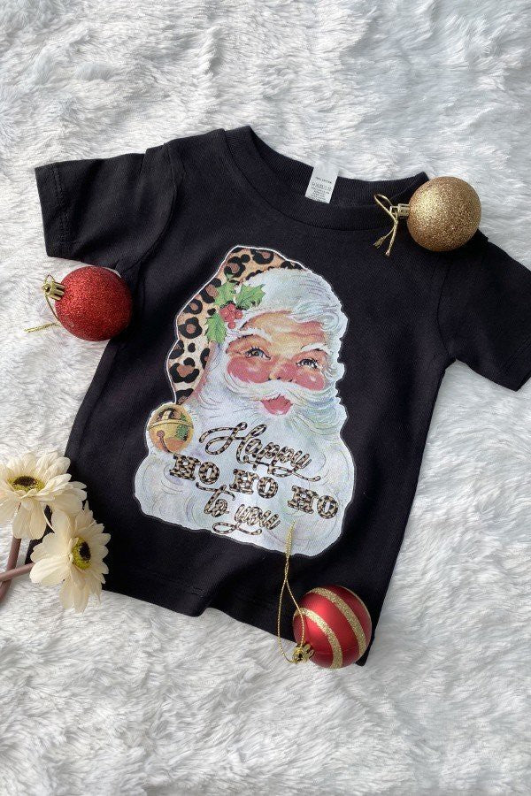 Kids Lucky Happy Ho Ho Ho Christmas Leopard Tee