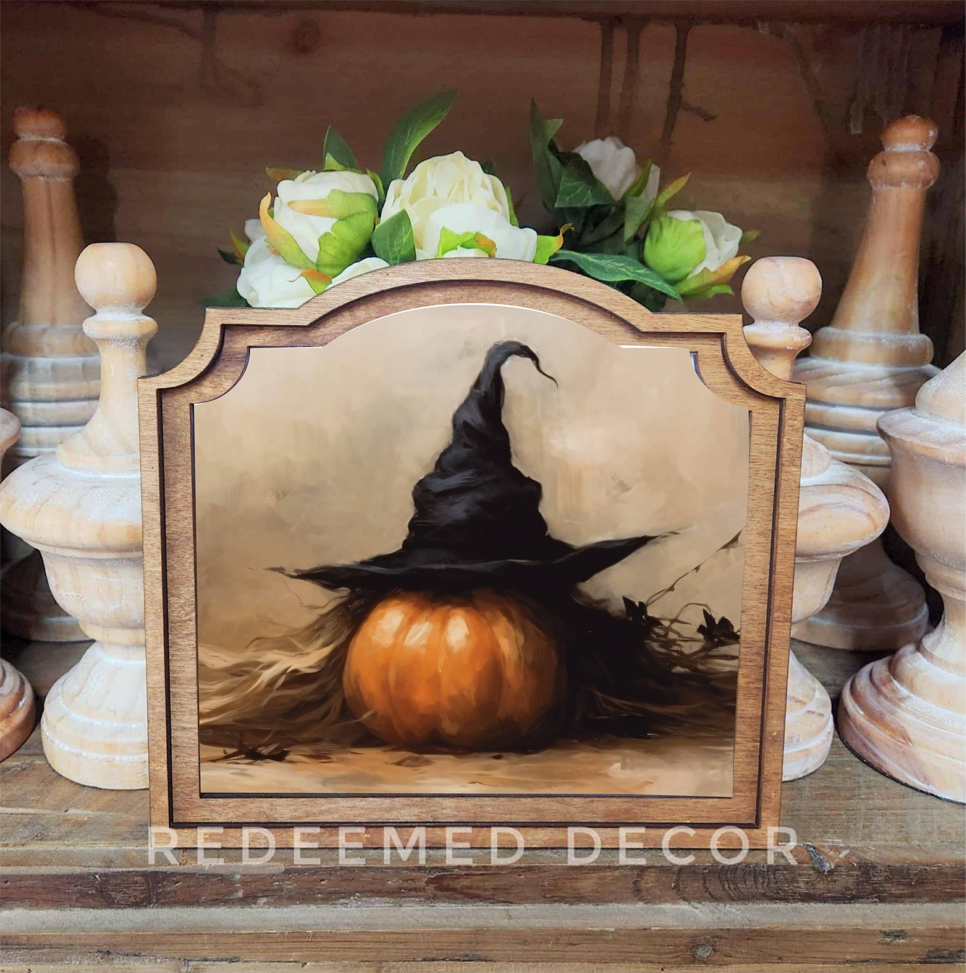 This unique framed art is hand made in Idaho. It measures 9 inches tall by 10 inches wide. The custom frame shape gives the piece a vintage look. The artwork is printed onto canvas using beautiful Canon pigment inks. The canvas is mounted onto a wood backer. The top frame is laser cut birch wood stained in a neutral Early American tone. The entire piece is lightweight and easy to hang with an adhesive strip. (not included) You can also lean this artwork against a wall or other decor item to display it on a shelf or tabletop. It could also be displayed on an easel.