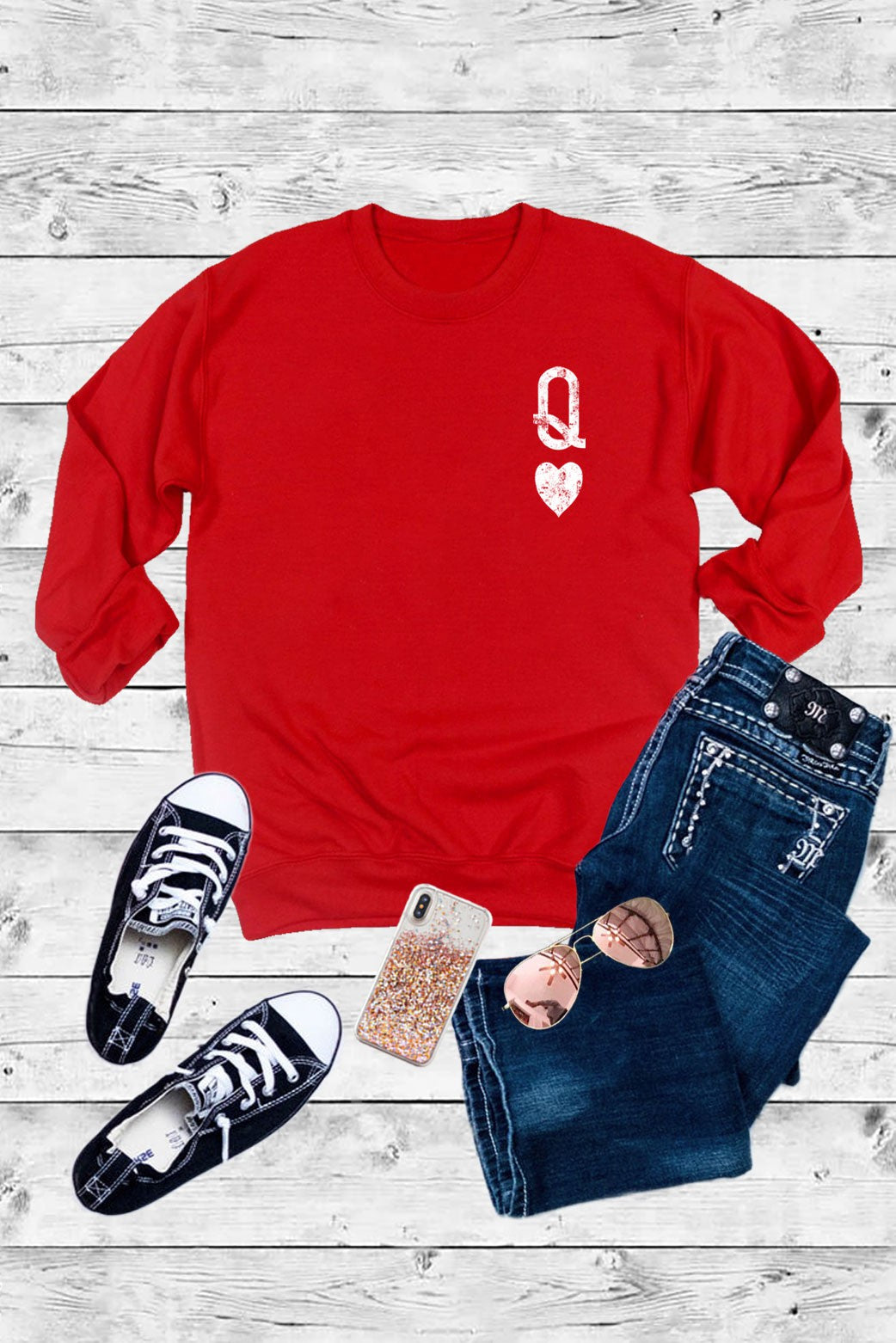 Queen Of Hearts Graphic Screen Printed Crew-Neck FLEECE Sweatshirt.